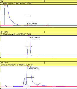 ppm malathion sample (left), and the phosphorus FPD can detect a 5