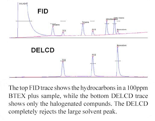 - The FID detects hydrocarbons and the DELCD identifies which are halogenated