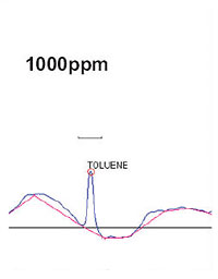 These chromatograms were produced by an SRI GC equipped with an RGD detector. Room air samples were diluted with nitrogen in Tedlar bags, then injected by a gas sampling valve onto a molecular sieve packed column.