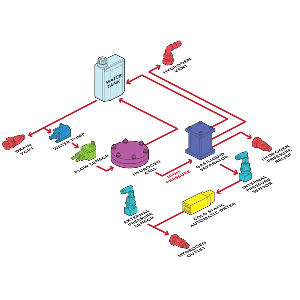 | Safety | Automatic shut down – internal/external hydrogen leak, overpressure and low water |